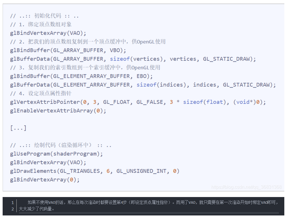 最早我是在这个链接里见到VAO下如何通过代码来绘制图形,复用的。