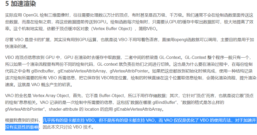 从高亮的那句话,就能这么猜测一下——在历史上,是先出现的VBO,再出现的VAO+VBO