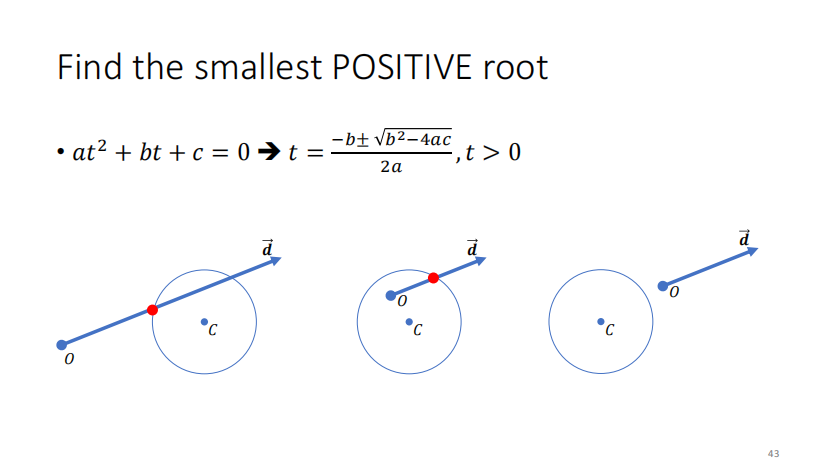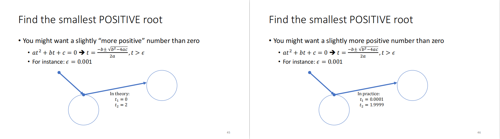 【弹幕:因为有靠近0的根的时候,因为数值精度问题,会偶尔返回给你一个正根,偶尔返回一个负根(都很小),就会出现相交判定时灵时不灵】