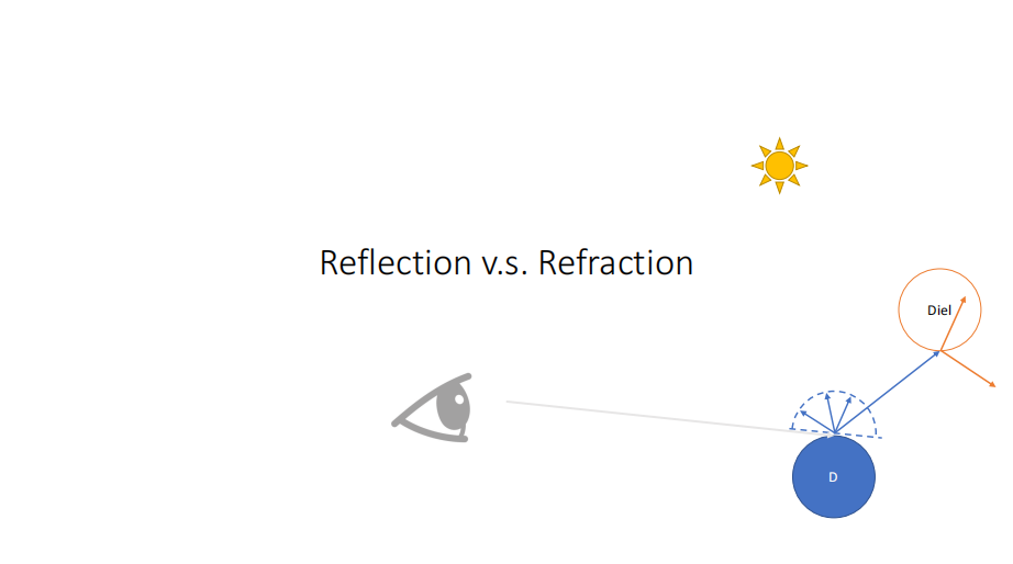 - 颜色:可以当成一个过滤器,比如白光射入红墙,反射以后,多余的颜色被过滤,就只剩了红光