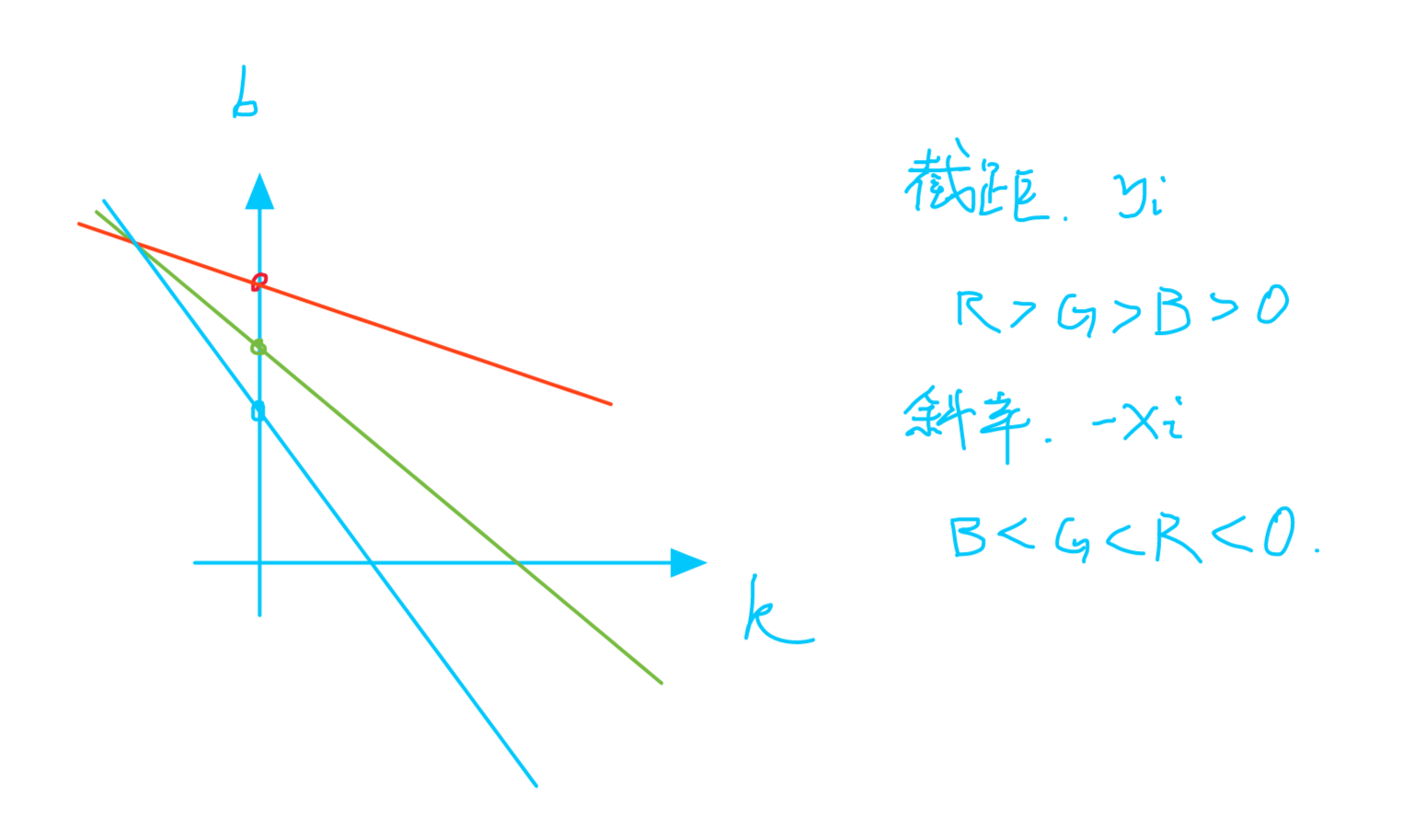它这个检测直线,大概就是,计算一下,是否有一条直线,能同时过RGB三个点。