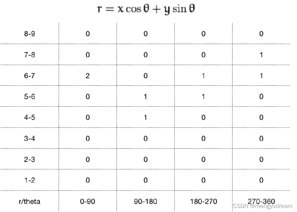 这个也是,提了二维累加数组,累加器,Hough矩阵。