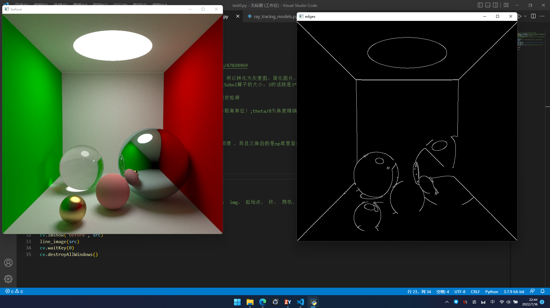 edges = cv.Canny(gray, 50, 150, apertureSize=3) # 第四个输入参数是Sobel算子的大小,3的话就是3*3。这个算子,好像是提取边缘的。