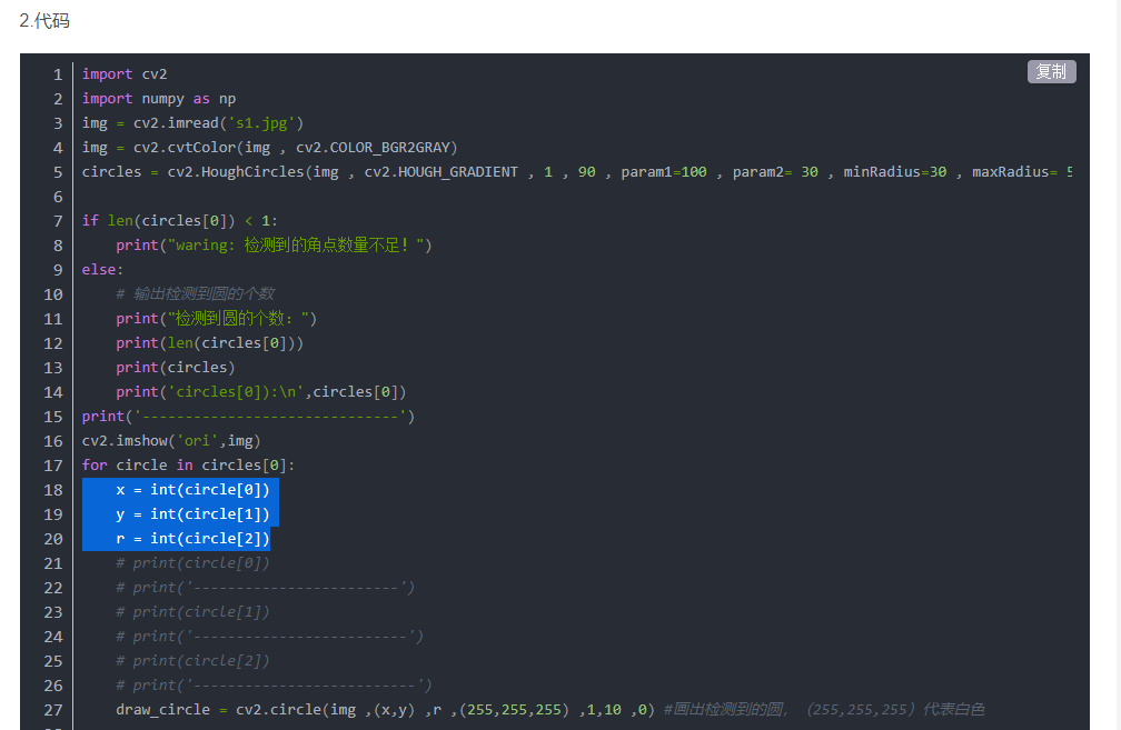 (41条消息) Python+opencv — cv2.HoughCircles() 圆形检测,并顺时针给圆编序_不知名的小白66的博客-优快云博客_cv2.houghcircles