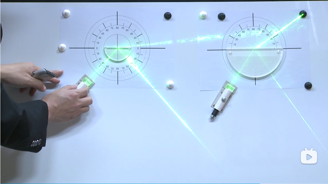 当光从一种透光材质射入另一种透光材质,会发生折射与反射
