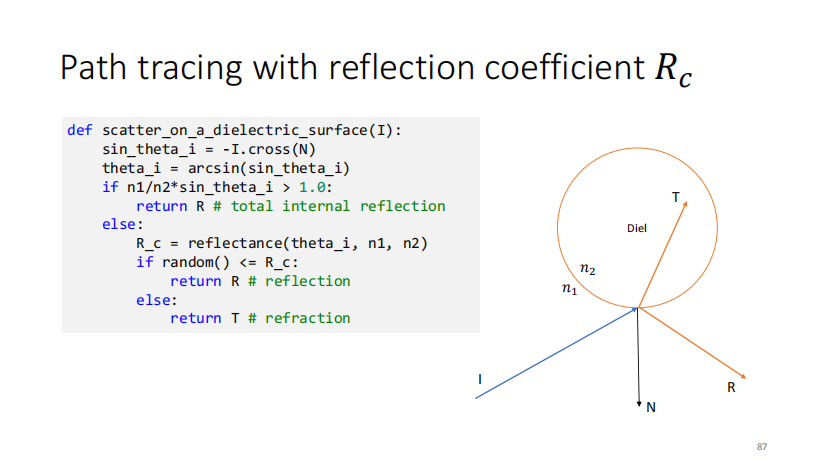 丢个骰子,结合反射率R,来决定这次的光线到底是折射还是反射。