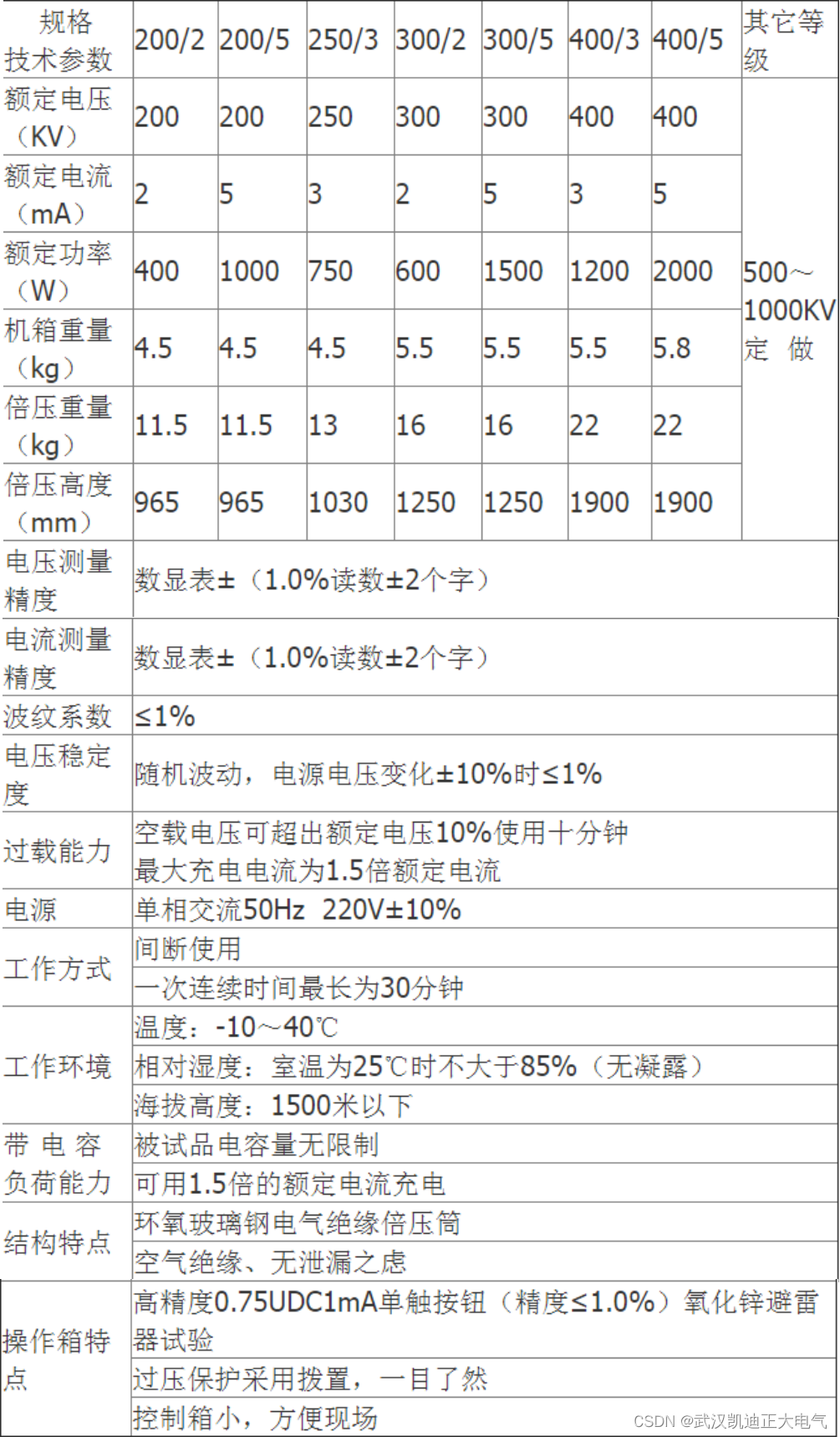 KDZG-II 60KVA5mA直流高压发生器是根据中国电力行业标准DL/T848.1-2004《直流高压发生器通用技术条件》设计制造的新一代便携式直流高压发生器。主要适用于电力部门、工矿、冶金、钢铁等企业动力部门对氧化锌避雷器、电力电缆、变压器、发电机等高压电气设备进行直流耐压试验。