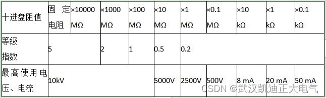 2、各十进盘的等级指数和最高使用电压或电流
