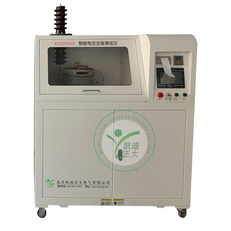 KDZD5550系列智能绝缘材料热态击穿电压测试仪主要适用于固体绝缘材料(如:塑料、橡胶、层压材料、薄膜、树脂、云母、陶瓷、玻璃、绝缘漆等绝缘材料及绝缘件)在工频电压或直流电压下击穿强度和耐电压的测试。应用于电力电子行业、机械工业部、研究所、军工研究、绝缘材料生产单位的高电压击穿试验而设计制造的。