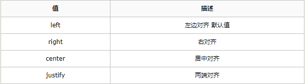 text-align 属性规定元素中的文本的水平对齐方式。