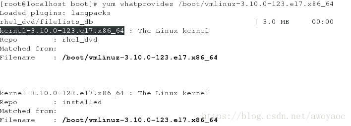 [root@localhost boot]# yum whatprovides /boot/vmlinuz-3.10.0-123.el7.x86_64