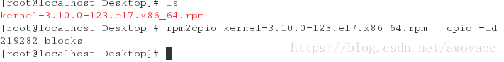 [root@localhost Desktop]# rpm2cpio kernel-3.10.0-123.el7.x86_64.rpm | cpio -id