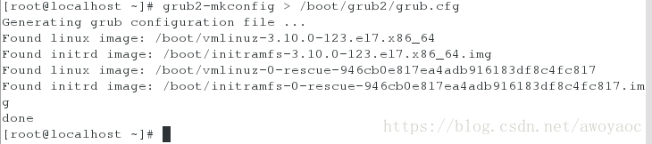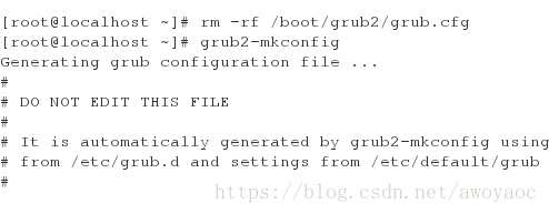 未关机可用[root@localhost ~]# grub2-mkconfig > /boot/grub2/grub.cfg修复