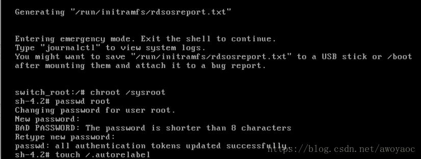 进入系统后执行chroot /sysroot进入真实系统环境