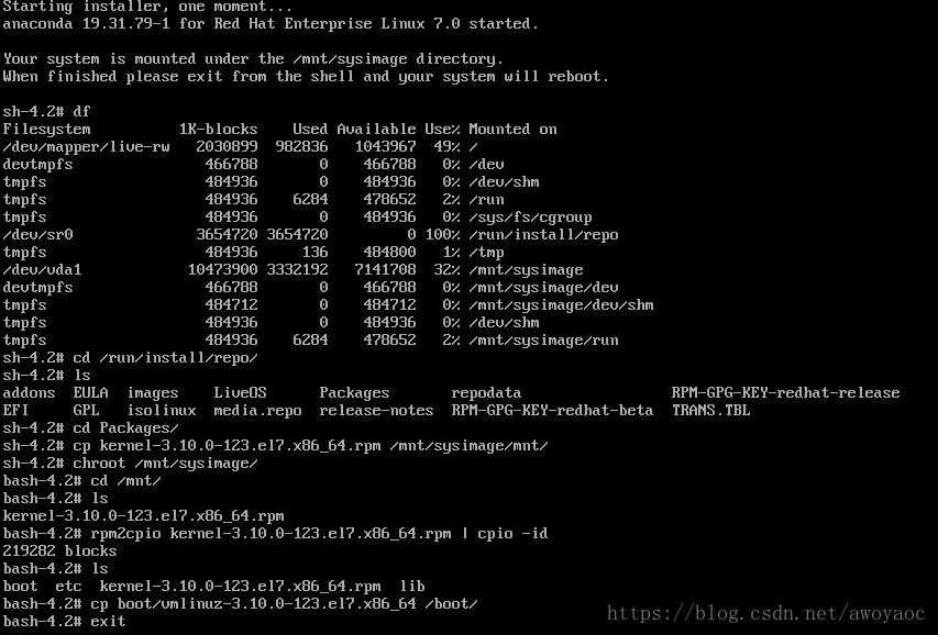cp vmlinuz-3.10.0-123.el7.x86_64 /mnt/sysimage/boot/
