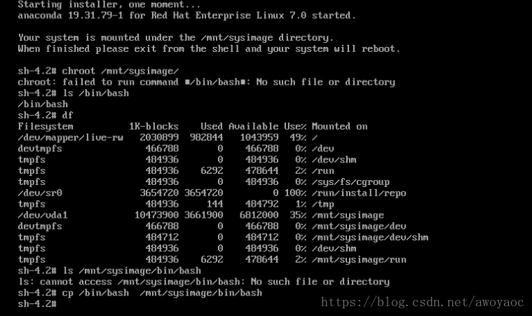 chroot /mnt/sysimage/时系统提示无/bin/bash目录