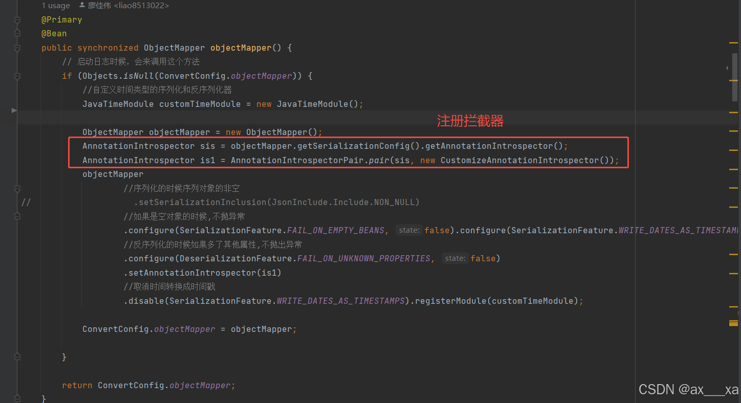 5、将CustomizeAnnotationIntrospector注册到ObjectMapper之中