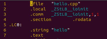 (2) 编译,将预处理后的文件不转换成汇编语言,生成文件.s [编译器egcs] gcc -S