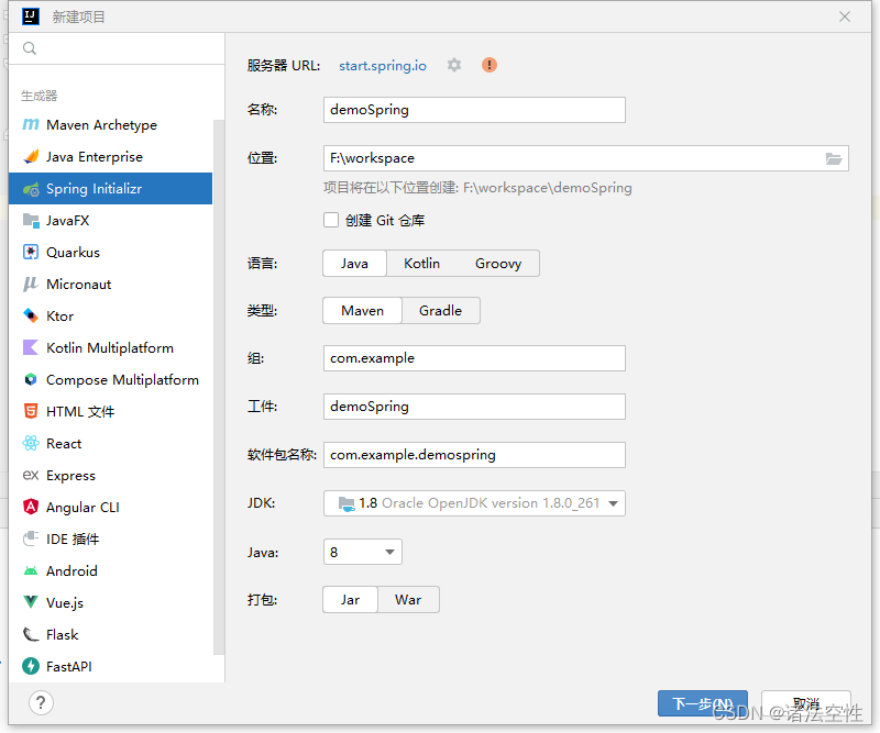 在这里,如果新建项目面板看不见spring initializr 选项,你可能用的是社区版本,在网上查查社区版怎么创建springboot项目吧,要下载一个插件就可以了