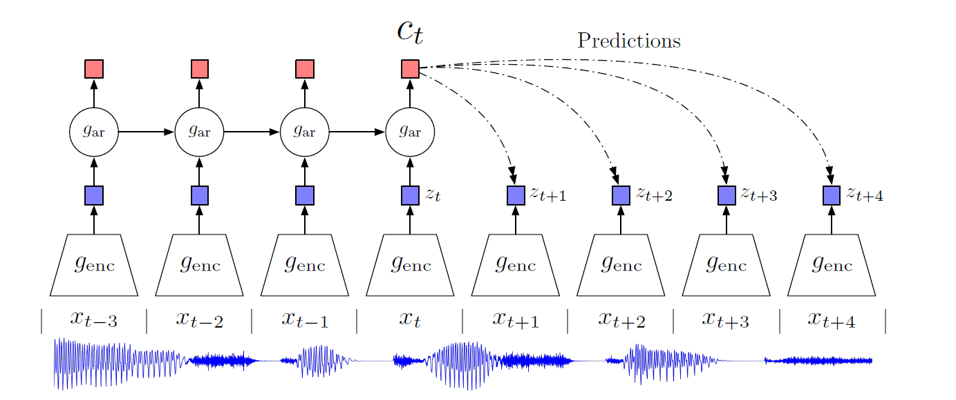 如图所示,zt为encoder的输出,ct为自回归模型当前时刻的输出。