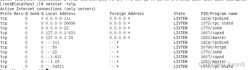 -l:表示过滤出“state(状态)”列中其值为LISTEN(监听)的连接;