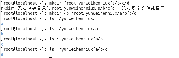 含义:当一次性创建多层不存在的目录的时候,添加-p参数,否则会报错