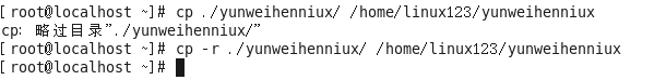 注意:当使用cp命令进行文件夹复制操作的时候需要添加选项“-r”【-r表示递归复制】,否则目录将被忽略