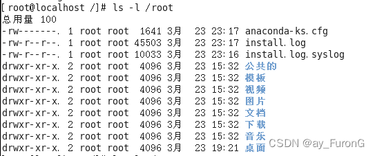 -a:表示显示所有的文件/文件夹(包含了隐藏文件/文件夹)