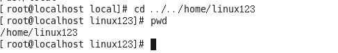 案例:当前在/usr/local下,需要使用相对路径切换目录到home目录下的Linux123用户家目录中去。