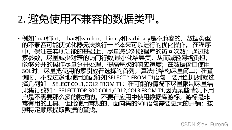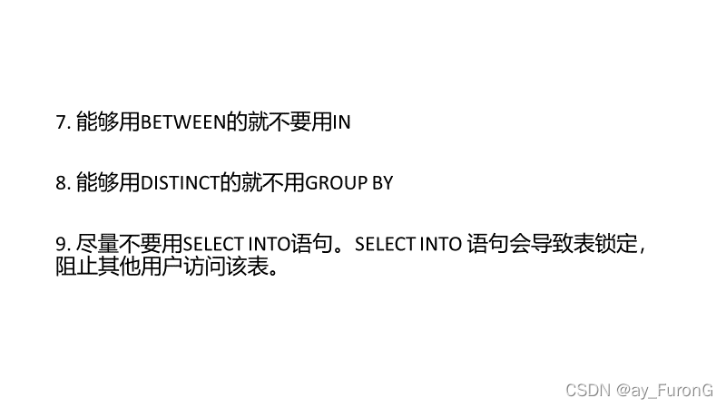 25.尽量避免使用游标,因为游标的效率较差,如果游标操作的数据超过1万行,那么就应该考虑改写。