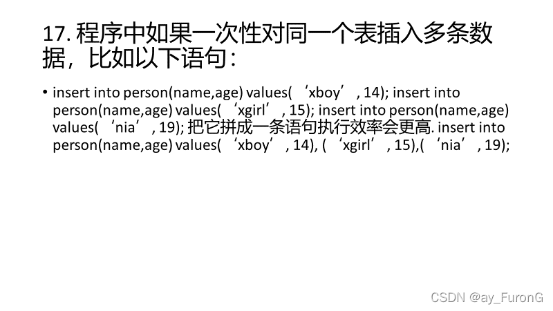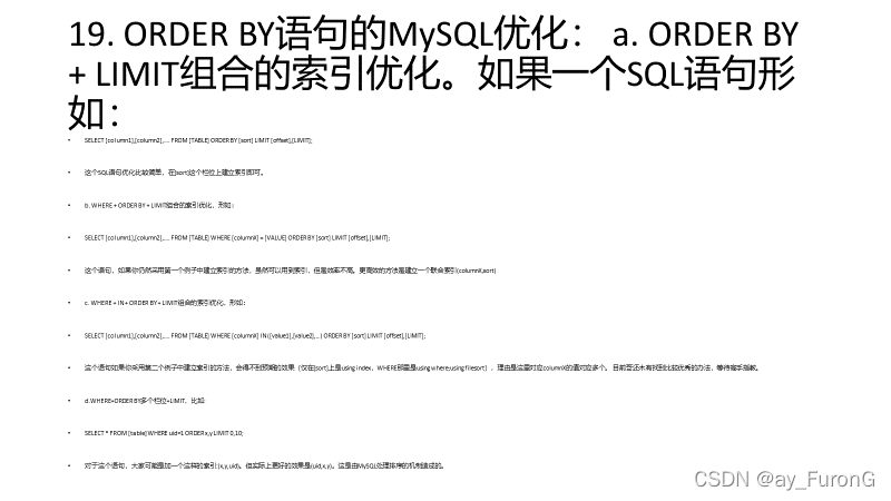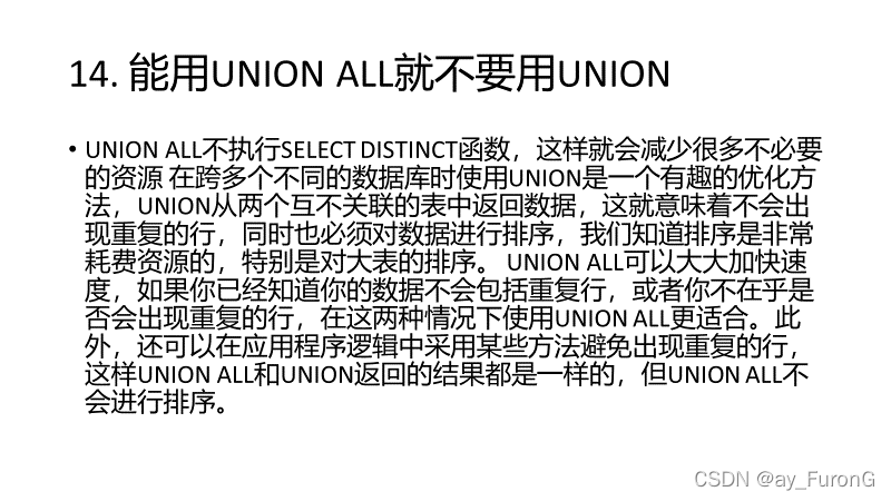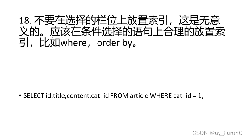 19.任何地方都不要使用 select * from t ,用具体的字段列表代替“*”,不要返回用不到的任何字段。