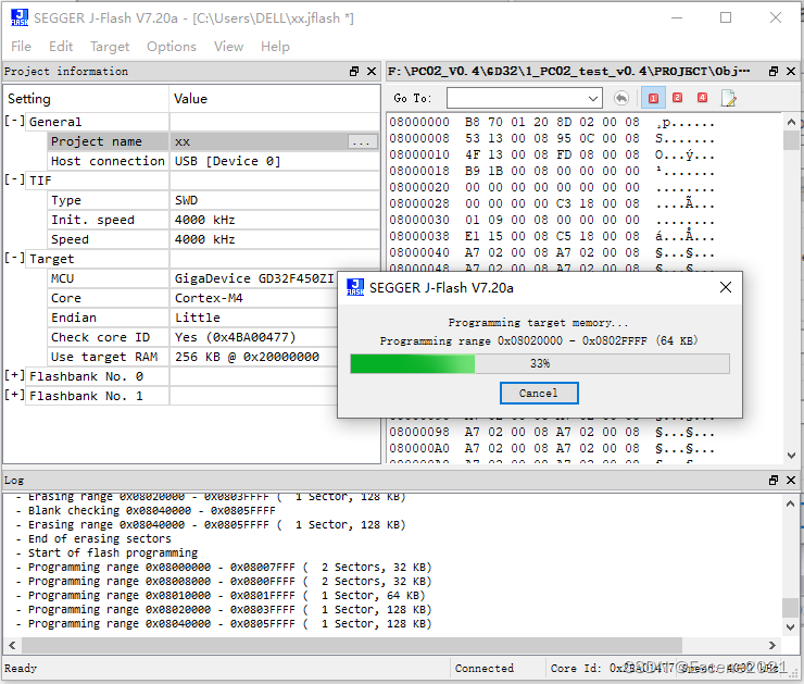 J-Flash直接烧写GD32芯片一般会出现异常错误,如下: