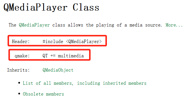 UI界面设计完成之后就是加入播放器类。QT中使用播放器类需要加入对应的链接模块,通过查询QT的帮助手册可以查到,然后在项目的pro文件中加上即可。