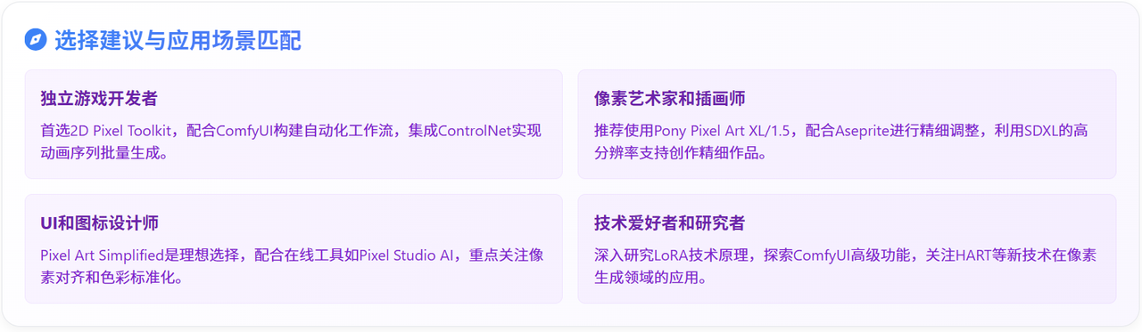 模型专业化:针对特定应用场景(如游戏开发、插画创作、UI 设计)进行专门优化,2D Pixel Toolkit 就是这一趋势的典型代表。