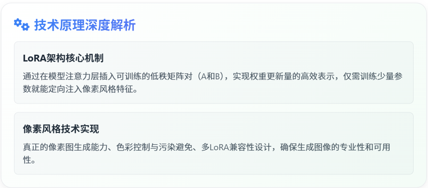本文将从技术原理、使用实践和生态对比三个维度,全面解析 2D Pixel Toolkit LoRA 的核心机制、应用方法和市场定位,为游戏开发者、像素艺术家和 AI 技术爱好者提供深入的技术洞察和实用的操作指南。