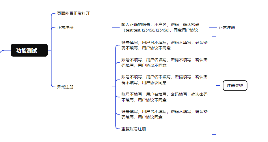 针对注册功能设计如下测试用例。
