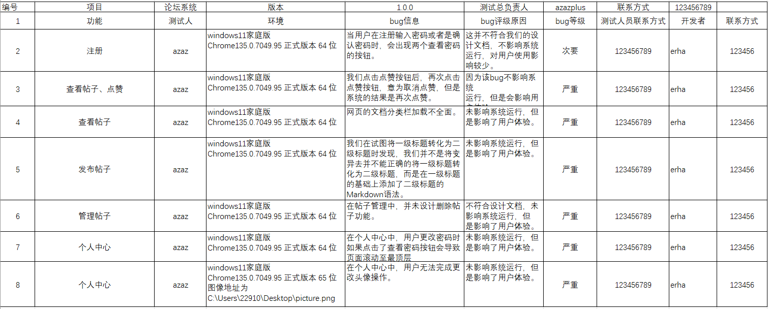 本次测试主要对登录,注册,查看帖子,发布帖子,管理帖子,个人中心进行测试。测试内容包含基本功能测试,界面测试,易用性测试,安全测试,兼容性测试,弱网测试。详细测试分工如下表。