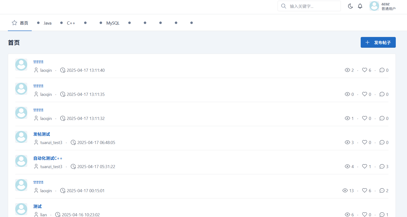 3.4发帖功能测试