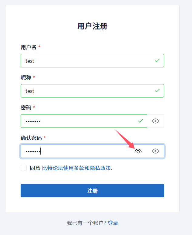 当用户在注册输入密码或者是确认密码时,会出现两个查看密码的按钮,这并不符合我们的设计文档,因此标记为一个次要Bug(不影响系统的运行)。