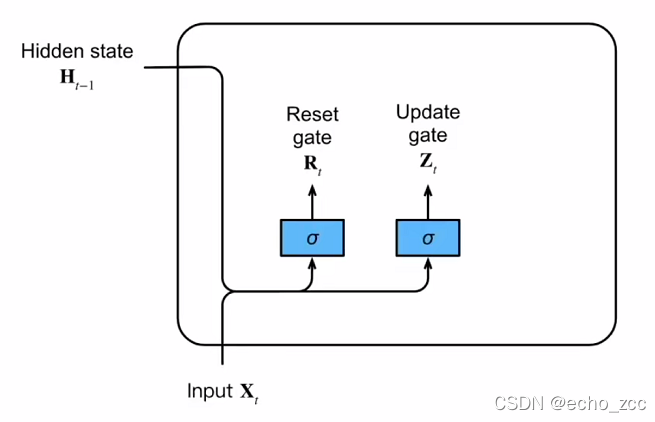 Zt=σ(XtWxz+Ht−1Whz+bz)Z_t=\sigma(X_tW_{xz}+H_{t-1}W_{hz}+b_z)Zt=σ(XtWxz+Ht−1Whz+bz)