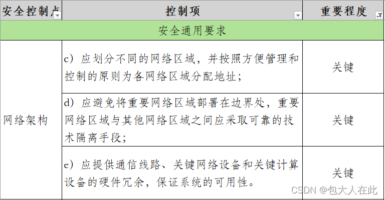 c)网络架构需要划分不同的安全域,并为安全域分配合理的IP地址段。安全域如DMZ区、内网服务器区、用户办公区等。合理的IP段划分也可以在事后快速定位。不应出现单个IP地址段在多个安全域中重复使用,不同安全等级安全域使用相同IP地址段或子网等情况。场景举例:1)重要系统与办公网不使用相同网段;2)互联网系统与内部系统不使用相同网段;