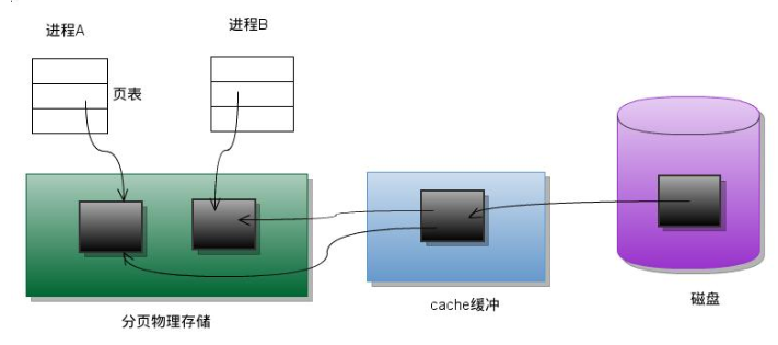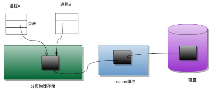 现在考虑林一种处理方法:进程A和进程B都将该页映射到自己的地址空间,当进程A第一次访问该页中的数据时,它生成一个缺页终端,内核此时读入这一页到内存并更新页表使之指向它,以后,当进程B访问同一页面而出现缺页中断时,该页已经在内存,内核只需要将进程B的页表登记项指向次页即可。