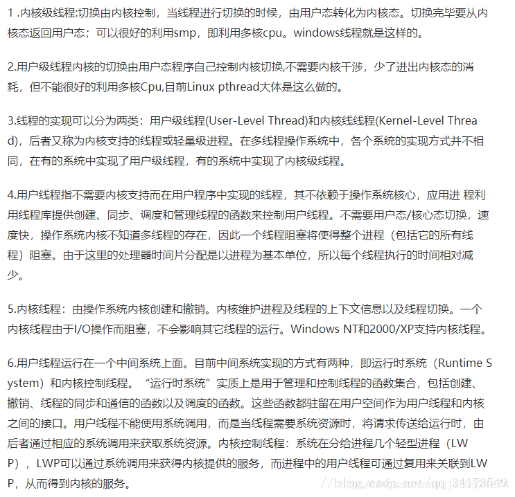 我的理解是每个进程持有多个轻型进程(即内核级线程),而java中Thread创建的线程是用户级线程。假设进程分配到了x个内核线程,而java进程中创建了y个用户级线程。那y个用户级线程将轮流关联到x个内核线程上,同一时间一个内核级线程只关联一个内核级线程。也就是说内核级线程被关联到cpu,而用户级线程关联到内核级线程,所以java语言中的new Thread创建出来的是用户级线程,属于二级线程(内核级线程为一级线程)。注意内核线程和内核级线程的区别,内核级线程是指操作系统内核支持的线程,而内核线程指的是运行在内核空间中的内核级线程。内核级线程可以运行在内核空间或者用户空间中。