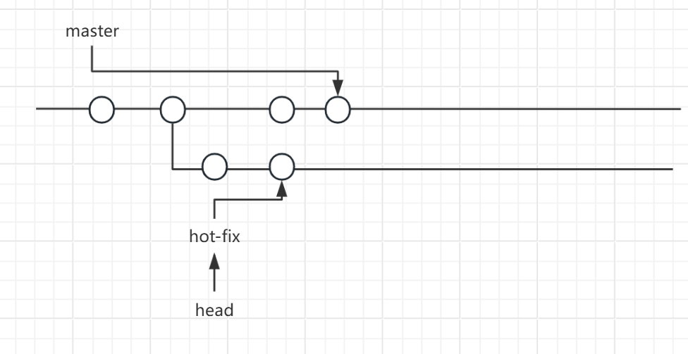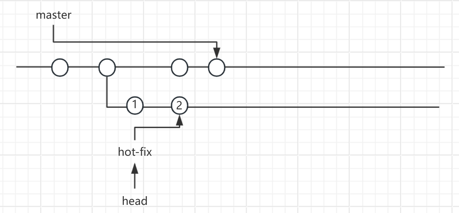 我们在master的第二次提交版本上创建了一个分支,可以看到此时hot-fix是默认指向此版本的。