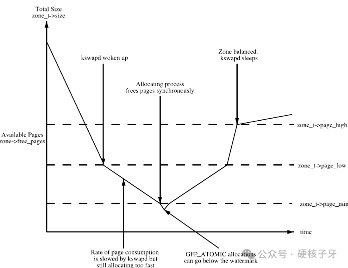那Linux内核中有几条水位线呢?三条。对应的阈值就是三个: