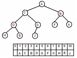 For any element in array position i, the left child is in position 2i, the right child is in (2i + 1), and the parent is in position [i/2].