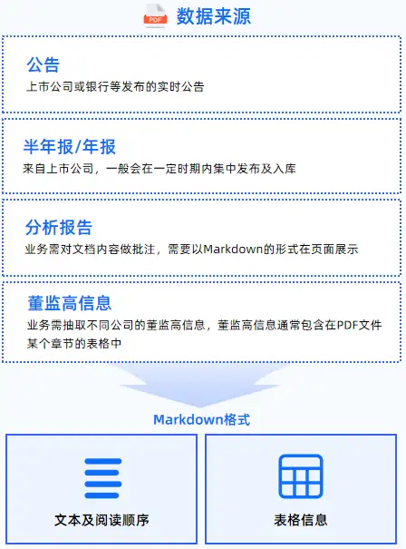 金融行业作为数据密集型行业,拥有海量高价值数据资源。在数字化转型浪潮中,如何挖掘非结构化数据价值,成为金融机构面临的重要课题。年报作为企业信息披露的核心载体,以 PDF 格式呈现的年报包含大量非结构化数据,对其进行结构化提取,能为金融机构的投资决策、风险评估、合规审查等提供有力支持,因此显得尤为重要和紧迫。