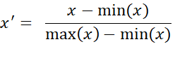 许多人称之为归一化(normalization),是最简单的特征缩放方法。数值被移动和重新缩放,使其最终的范围限制在0到1范围内。我们通过减去最小值,再除以最大值减去最小值来实现。