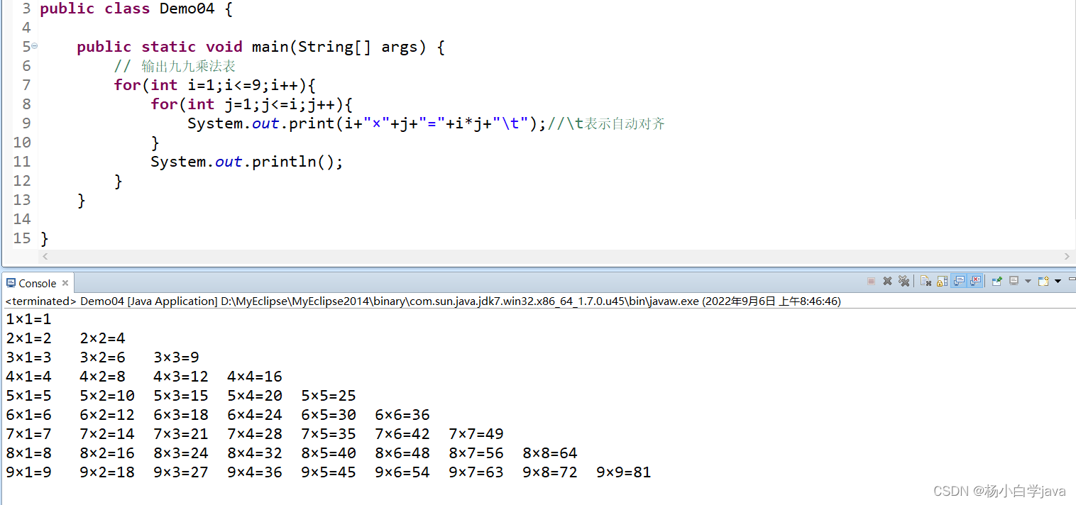 2022.9.3,记录学习java的第九天,今天主要学习了多种循环的嵌套使用和程序调试。