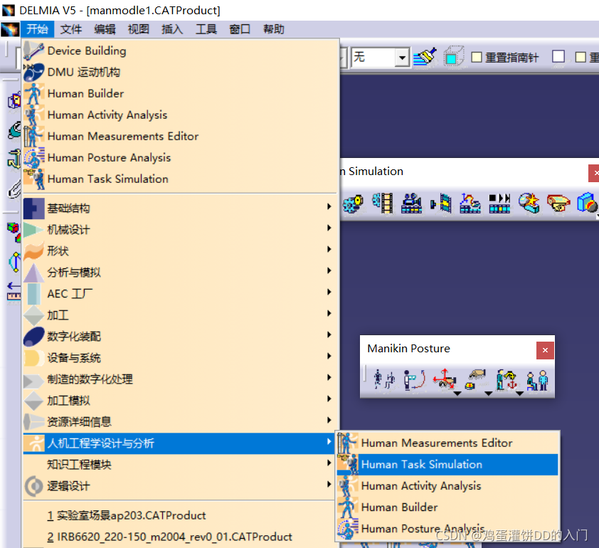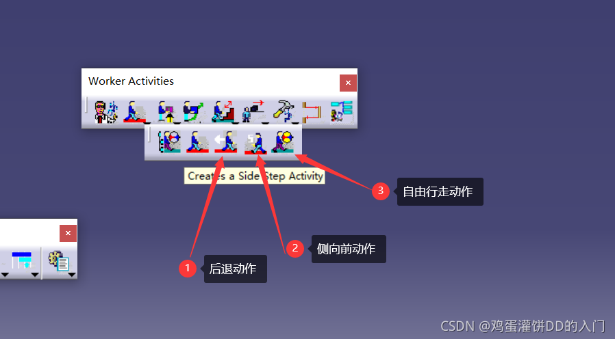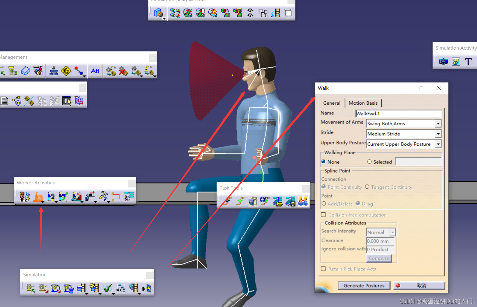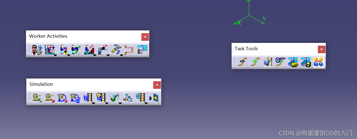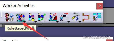 任务栏简介:worker activates——对工人添加任务;simulation——对工人活动进行仿真;task tools——对仿真任务进行操作